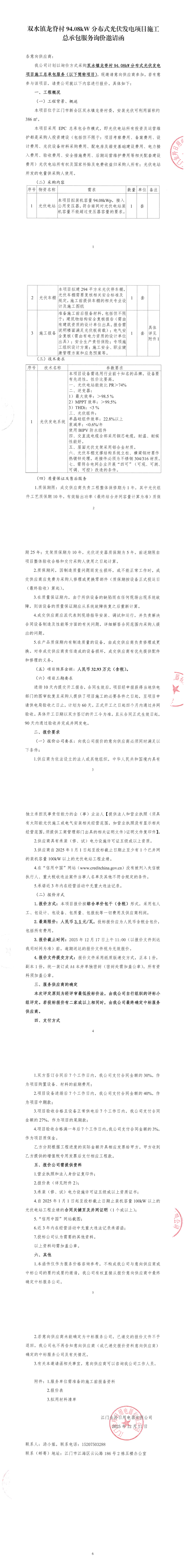 双水镇龙脊村90.08kW分布式光伏发电项目施工总承包服务询价邀请函