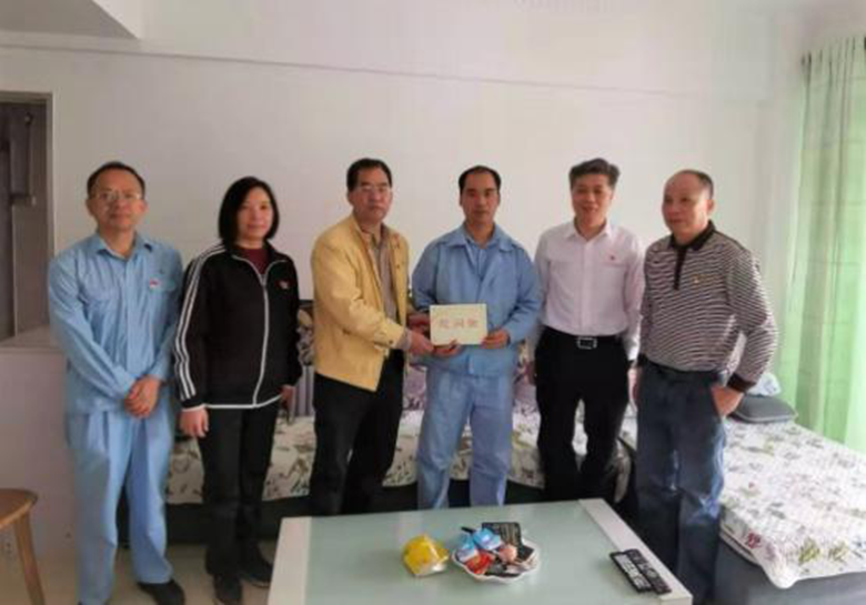 组织部办公室主任张祖荣,金羚集团党委副书记、工委会主任麦汉荣、三菱重工金羚空调器有限公司工会主席伍敏陪同探访。