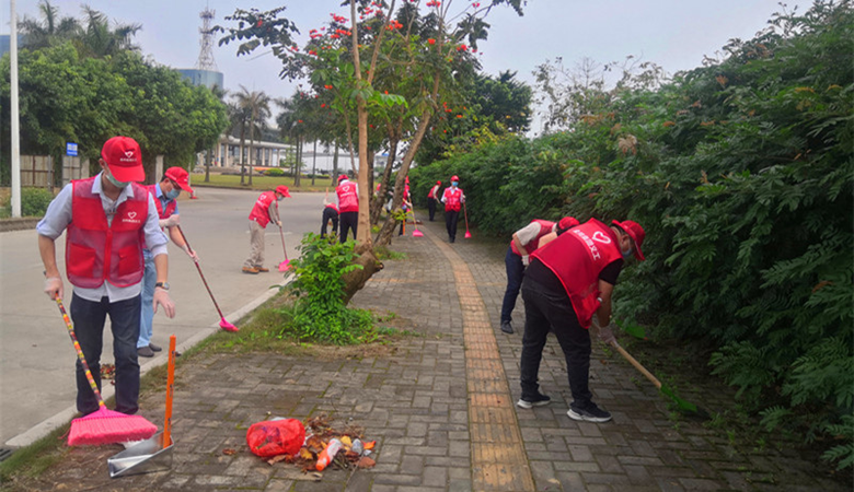 在清洁大行动活动中,义工们积极发扬奉献精神,不怕脏、不怕累,对社区街道地面生活废弃物、绿化带落叶、杂草等进行了深度清洁打扫,不留“死角”。大家齐心协力,打造干净、卫生的生活环境,最大限度地减少病毒细菌的滋生蔓延。