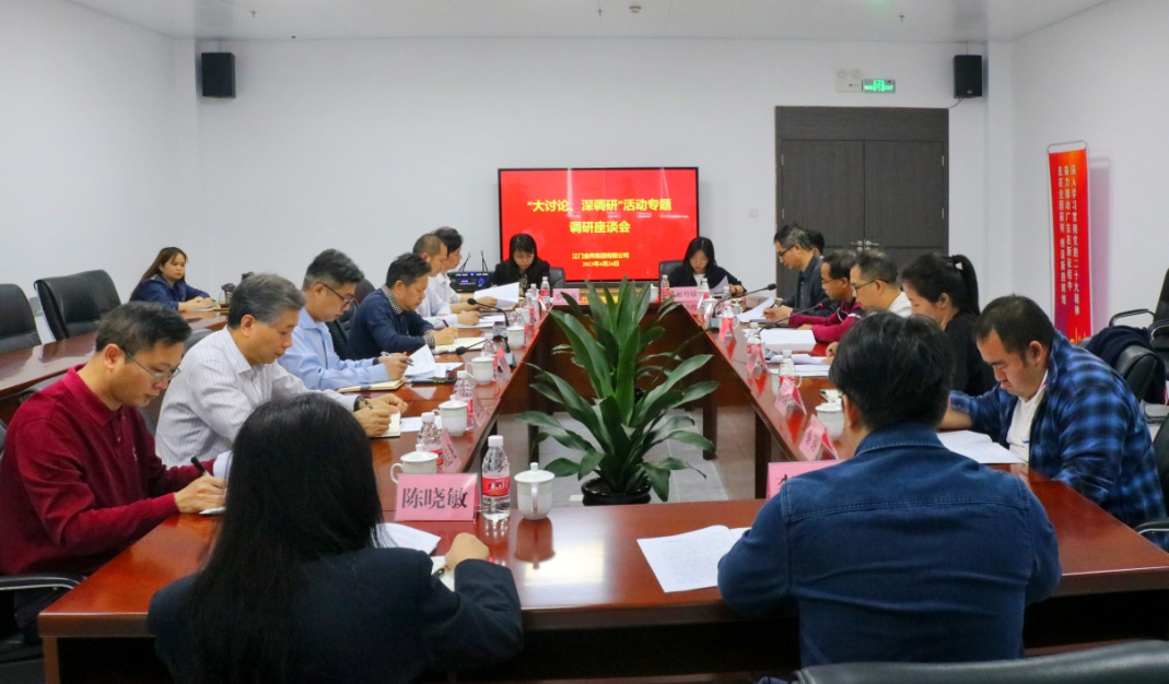 为全面深入学习贯彻党的二十大精神、习近平总书记考察广东重要讲话和重要指示精神、中央经济工作会议精神,以及陈岸明书记调研金羚集团的讲话精神,持续深入开展“大讨论、深调研”活动。4月26日,江门发展集团党委副书记、董事陈伟光到金羚集团开展专题调研活动,调研座谈会由金羚集团党委书记、董事长罗发归主持,各级领导班子成员以及中层干部参加会议。