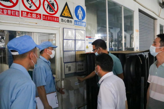 吴彩生同志一行先到三菱重工金羚空调器有限公司等生产现场实地进行了安全检查,检查了车间的消防安全、有限空间安全、用电安全、员工个人防护安全等,他对现场的员工提出了要严格执行安全生产相关规定和疫情防控工作的要求。