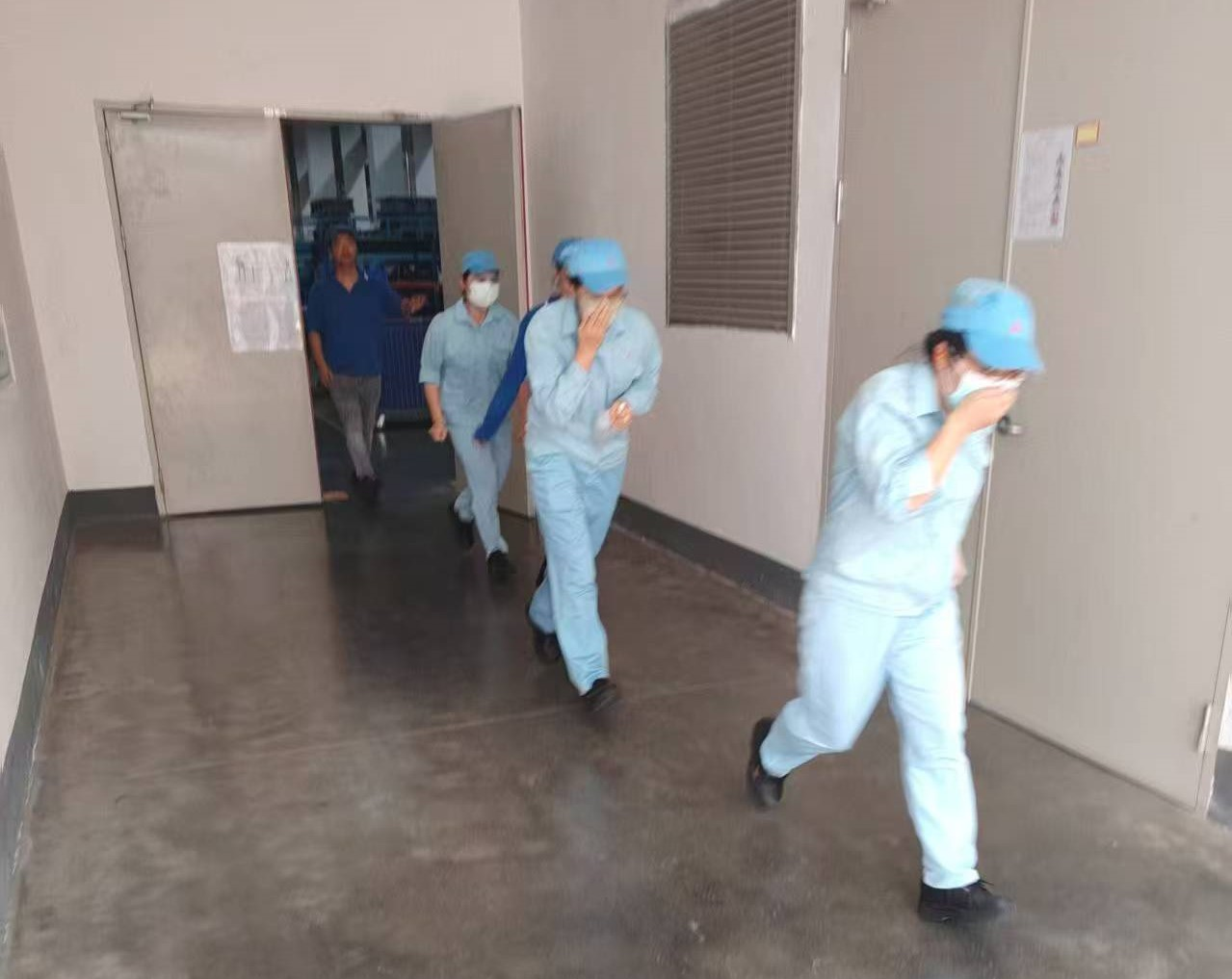 公司当日出勤的659名员工闻警而动,按照预定的疏散路线,迅速、有序地撤离至办公楼前开阔的紧急疏散集合点集合,并按部门迅速排好队伍,工作人员点验人数,确保“一个都不能少”。