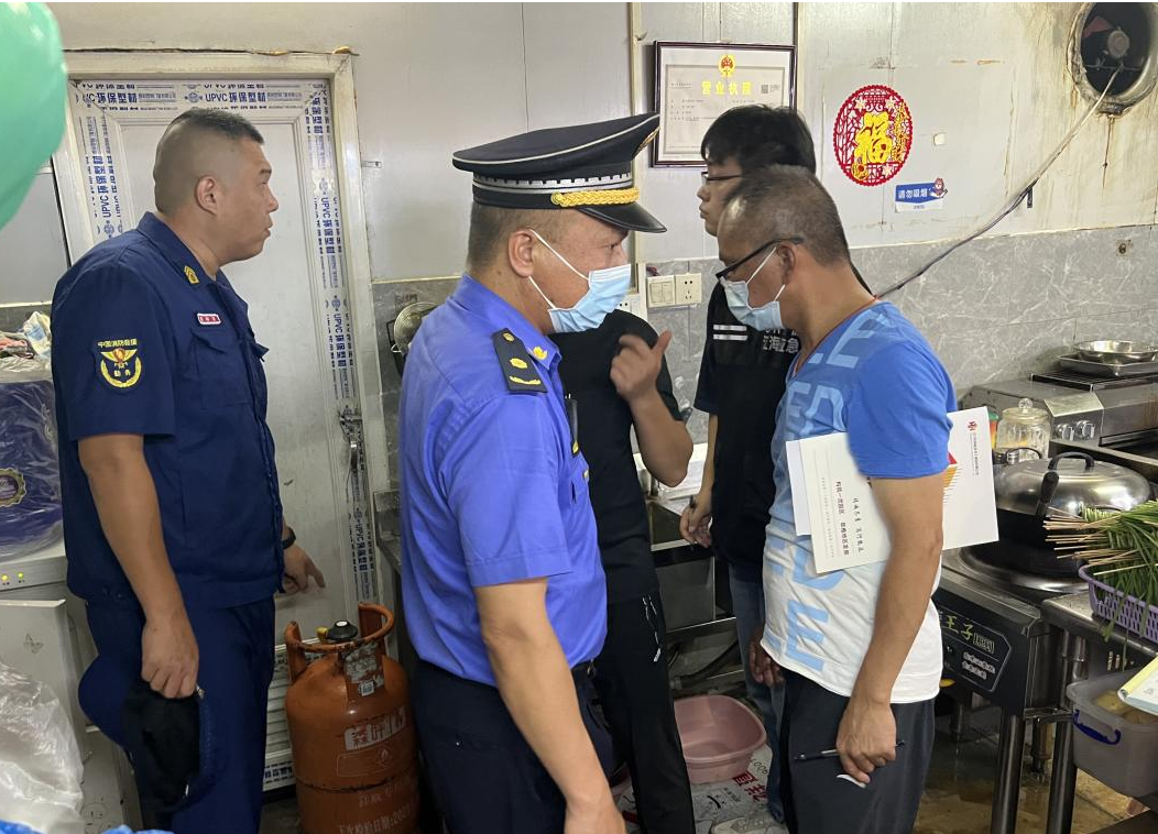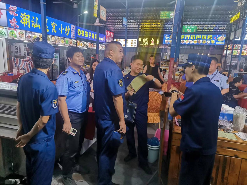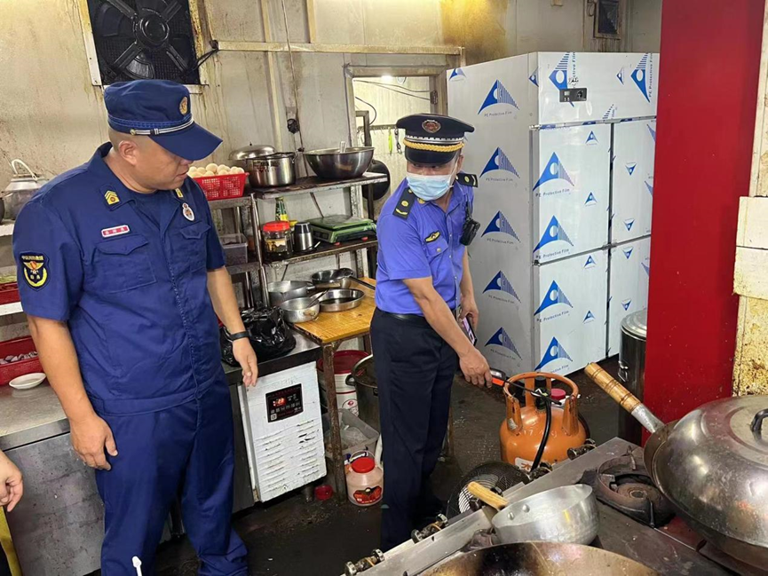 6月22日晚上,金羚集团和江海区应急管理局、城市管理、综合执法局、经促局及燃气经营单位等部门一起对租户彩色方块美食街内所有餐饮店商户开展燃气安全专项检查。检查组一行采取现场观察、询问等方法,重点对美食街内所有餐饮店是否存在违规存放和使用燃气,燃气设施、连接管道、阀门是否存在安全隐患,消防设施器材是否完好无损,安全疏散通道是否畅通等情况进行检查,并对检查中发现的问题,逐一登记,责令立即进行整改。